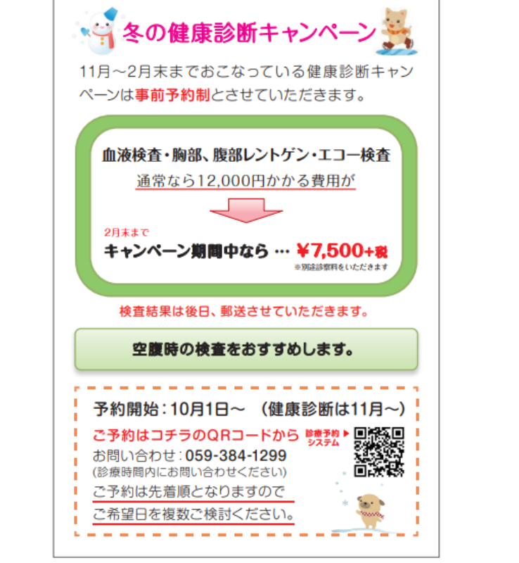 当院では11月から2月まで冬季限定の健康診断を行っております。